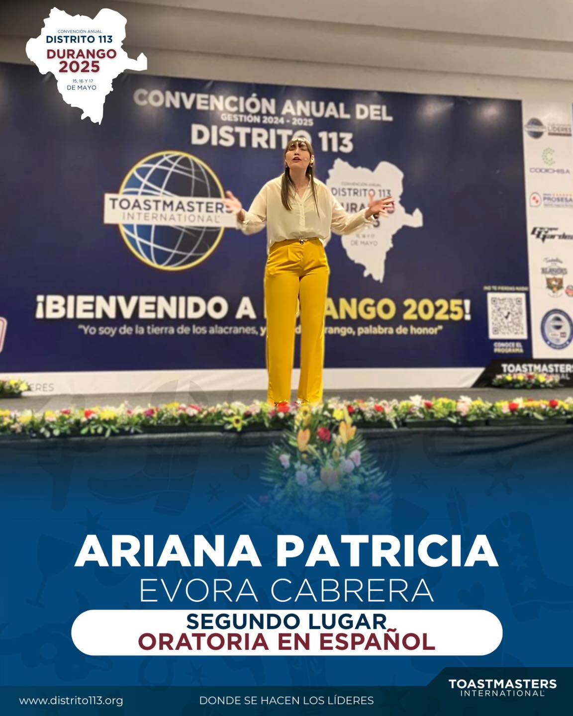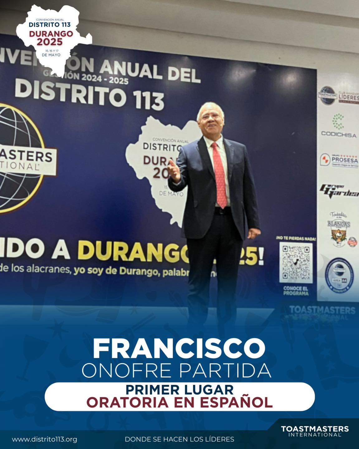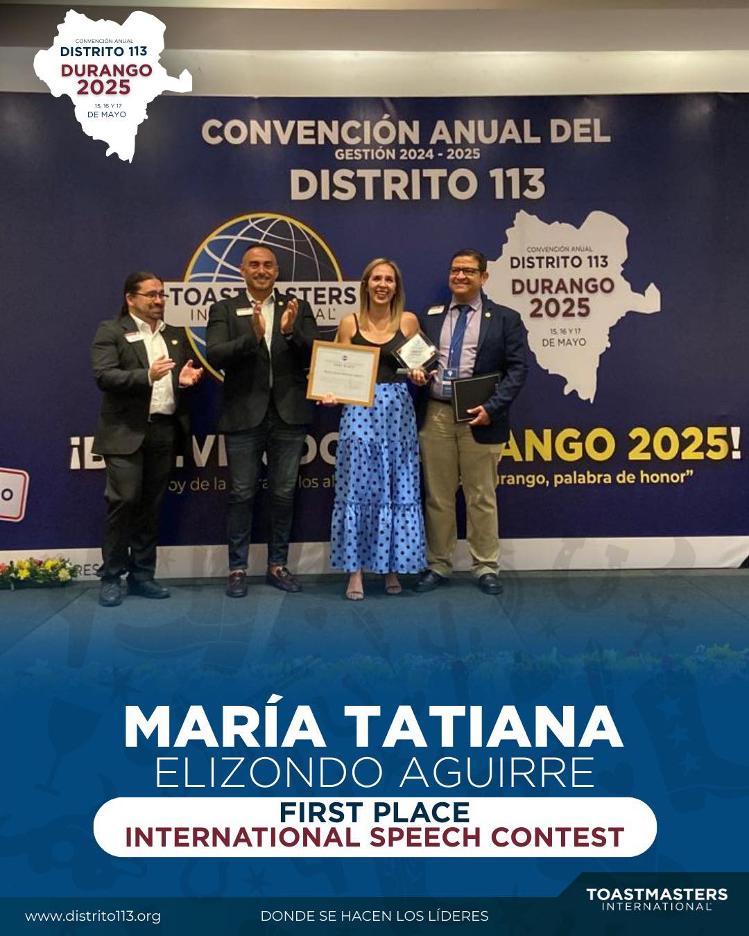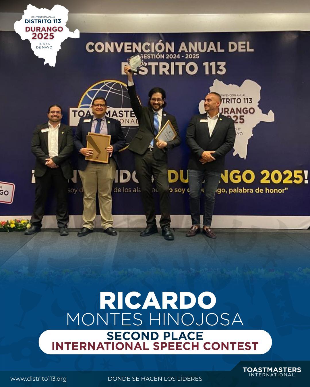 🏆 Be a winner and get a step closer to worldwide public speaking stardom! Finalists from 9 Divisions (attending from Mexico’s north and bajío States) will engage in a thrilling competition aiming to define our District champions. First place winner will advance to Toastmasters’ World Championship of Public Speaking® region quarterfinals!